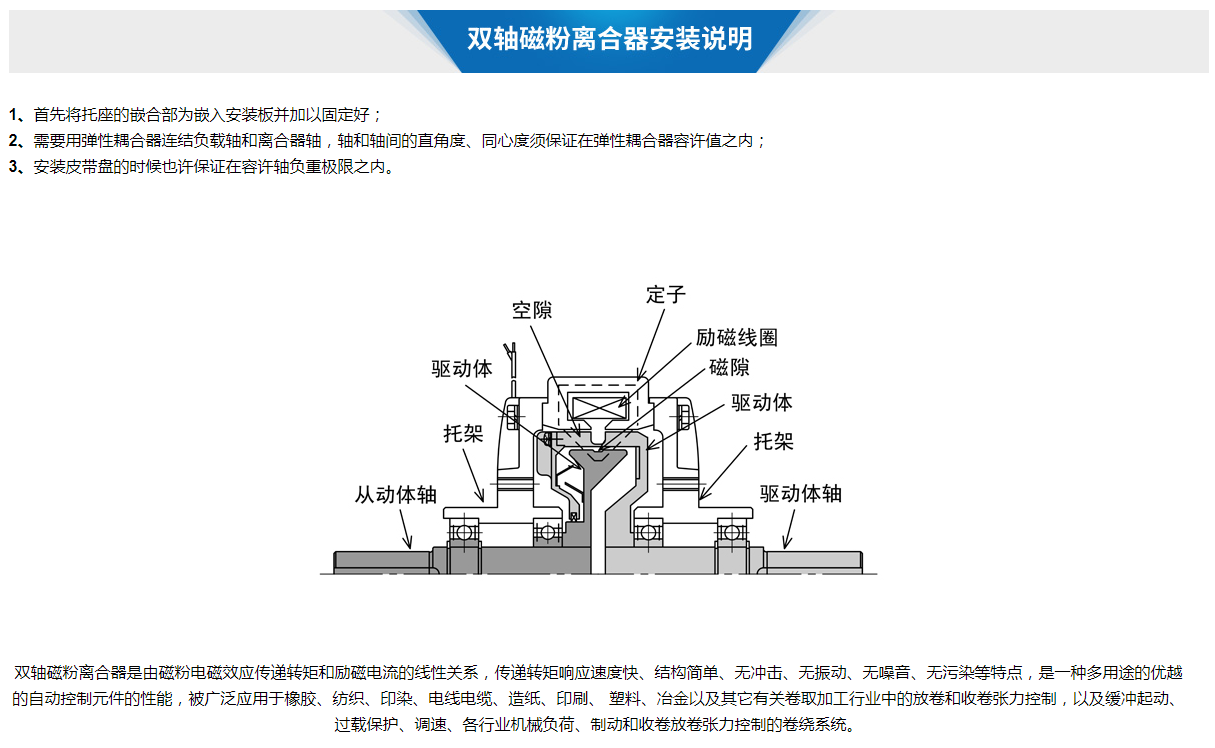 雙軸磁粉離合器,雙伸出軸磁粉離合器