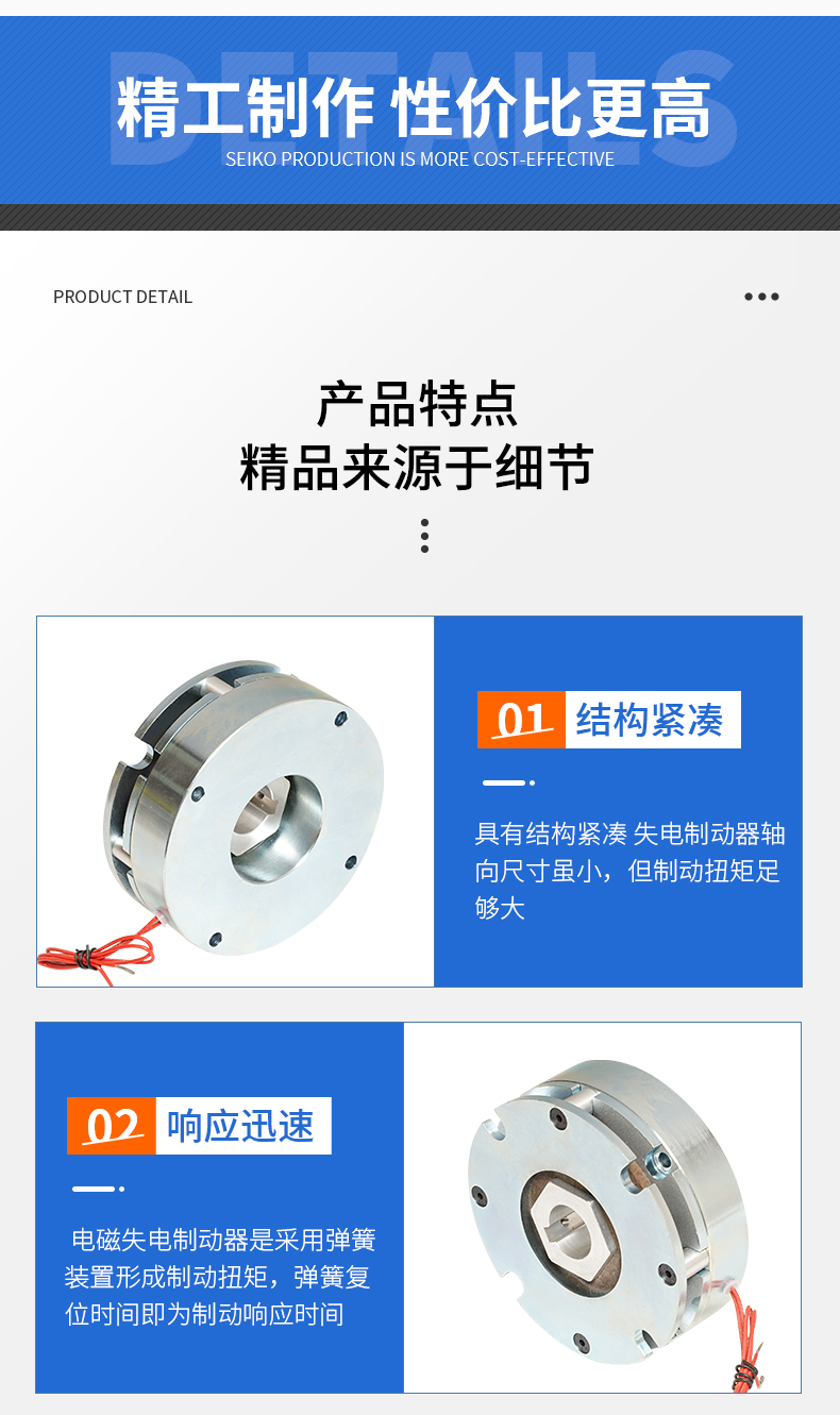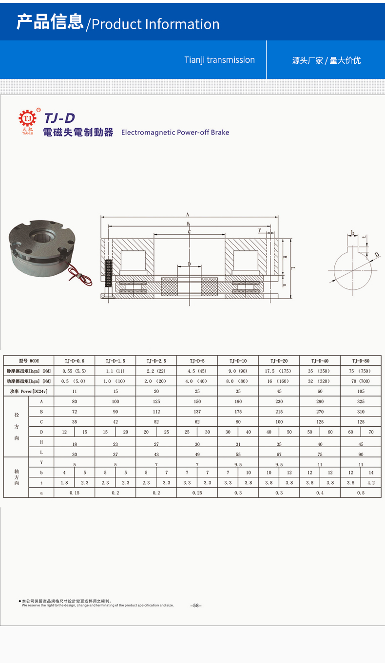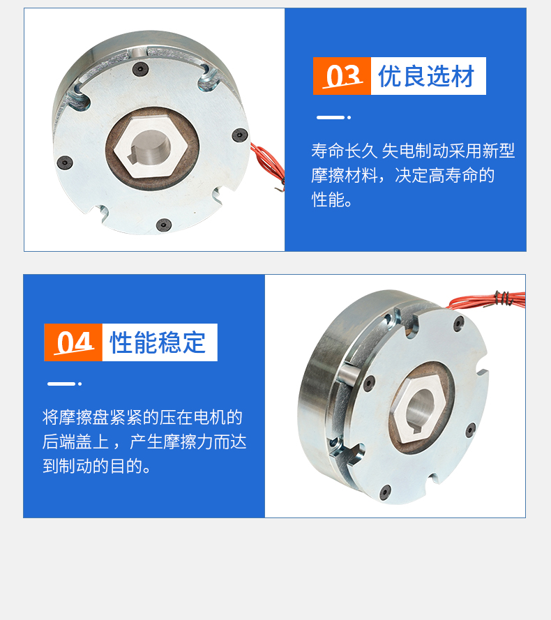 天機生產(chǎn)的電磁斷電剎車器也稱失電制動器,是由磁軛、勵磁線圈、彈簧、制動盤、銜鐵、花鍵套、安裝鏍釘?shù)冉M成,制動器安裝在設(shè)備的法蘭盤(或電動機)的后端伸,傳動軸與花鍵套與制動盤聯(lián)結(jié)。 勵磁線圈接通額定電壓(DC)時,電磁力吸合銜鐵,使銜鐵與制動盤脫離(釋放),這時傳動軸帶著制動盤正常運轉(zhuǎn)或啟動,當(dāng)傳動系統(tǒng)分離或斷電時,制動器也同時斷電,此時彈簧施壓于銜鐵,迫使制動盤與銜鐵及法蘭盤之間產(chǎn)生摩擦力矩,使傳動軸快速停轉(zhuǎn)。
