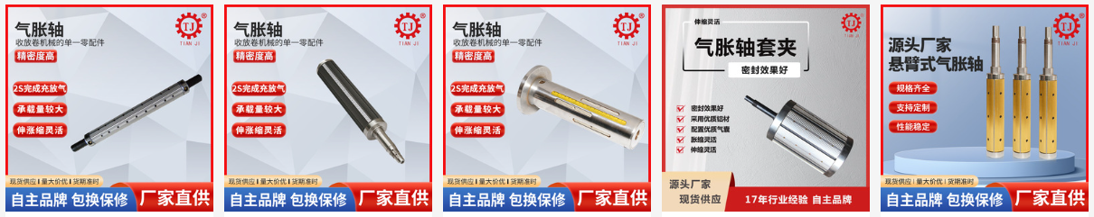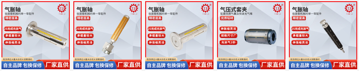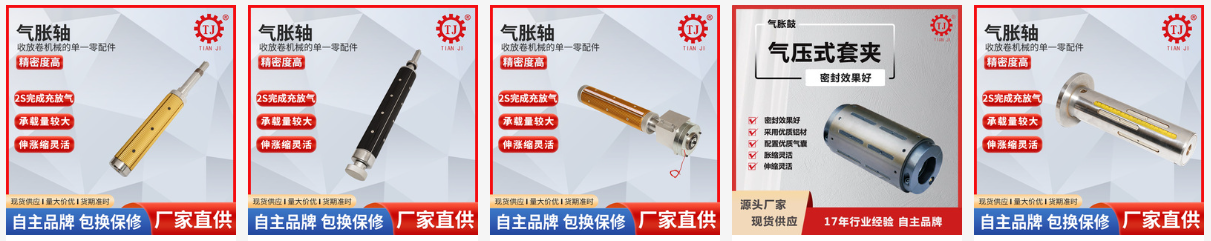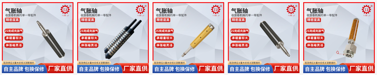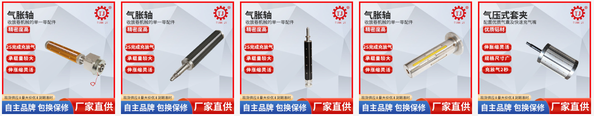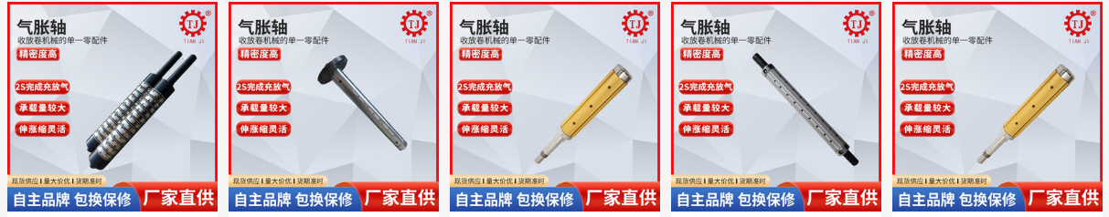 (氣漲軸)漲緊軸生產(chǎn)廠家生產(chǎn)的氣脹軸氣漲軸主要由前套、后套、氣缸、內(nèi)管、氣囊、凸形鍵盤等部分組成,氣漲軸膨脹套由表面氧化的優(yōu)質(zhì)鋁制成,氣漲軸(氣脹軸)配有優(yōu)質(zhì)氣囊和快速充氣嘴。氣漲(氣脹軸)軸密封效果好,氣漲軸(氣脹軸)使用壽命長,氣漲軸(氣脹軸)維護方便。